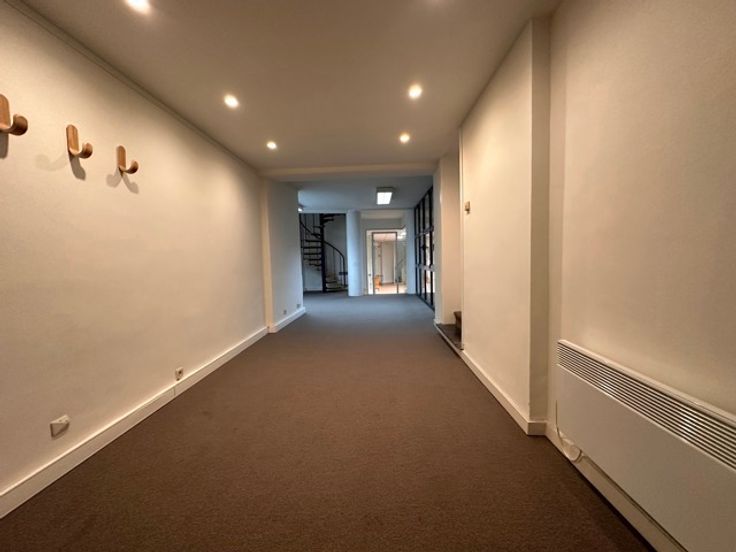 Le rez-de-chaussée se compose d’un enfilade de trois pièces lumineuses grâce à un atrium central, offrant une belle clarté naturelle, et s’étend vers une maison arrière comprenant deux immenses plateaux de travail. Le niveau -1, parfaitement aménagé, propose des sanitaires, des vestiaires et un local cuisine pour répondre aux besoins des utilisateurs.