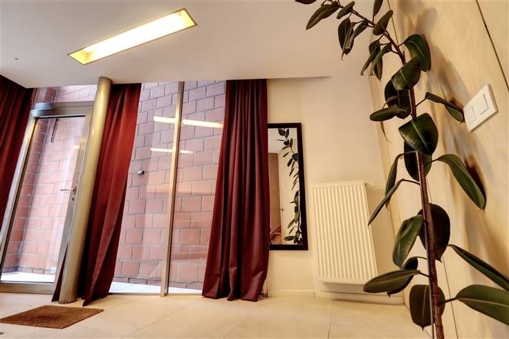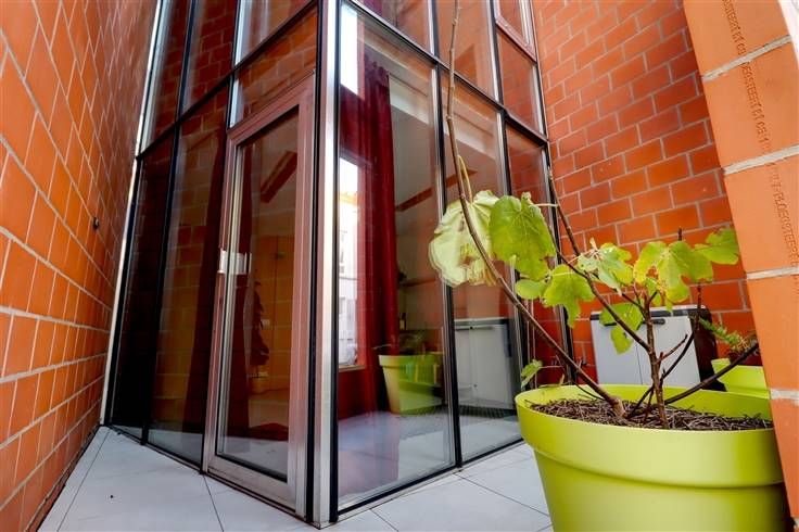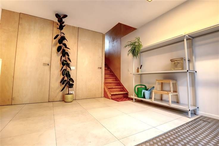 Dit unieke woonproject, gelegen in het hart van de stad, is een complete nieuwbouw met een moderne, eigentijdse architectuur. Het doordachte ontwerp combineert optimaal wooncomfort met doorgedreven energiezuinigheid. Elke ruimte wordt gekarakteriseerd door grote glaspartijen die zorgen voor een overvloed aan natuurlijk licht en een open, luchtig gevoel. De woning is opgedeeld in 3 niveaus. Weg van de straat geeft de inkompatio onmiddellijk de open sfeer weer, er is een apart toilet en ruimte voor een bureauhoekje. De slaapkamer met fraai ingerichte badkamer bevindt zich achteraan, een aansluitend binnenterras met groene aankleding brengt er rust. Het eerste verdiep wordt volledig ingenomen door de leefruimte. Zithoek, keuken en eethoek zijn er nauw met elkaar verbonden, een afwerking in berk fineer zorgt er voor een warme gezelligheid. De trap steek verder door naar het derde verdiep met slaap/hobby kamer en aanliggend dakterras. 16 m² buitenruimte met een schitterende oriëntatie en een zalig open zicht. De woning is voorzien van een kelderberging en plaats voor wasmachine en droogkast. Vloerverwarming in de leefruimte, airco op de derde verdiep, ventilatiesysteem C.