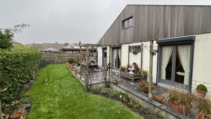 Deze alleenstaande bungalow uit 1980 is gebouwd in de voormalige Dahlialaan (nu Irislaan) in Moerbeke-Waas