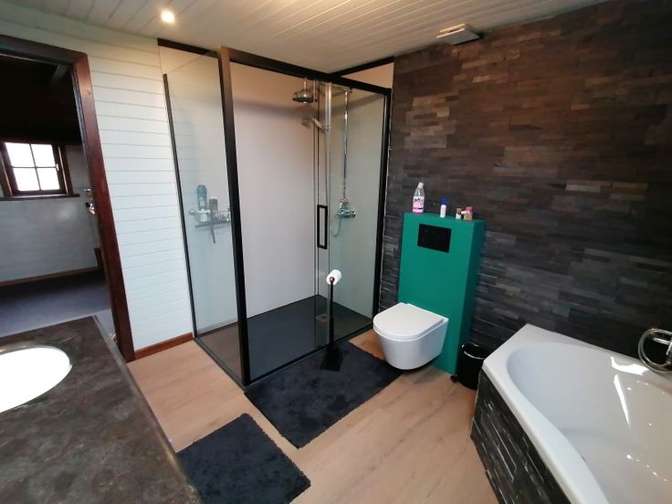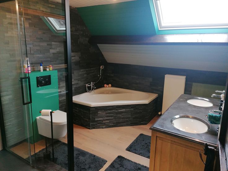 - Badkamer met ligbad, douche en toilet