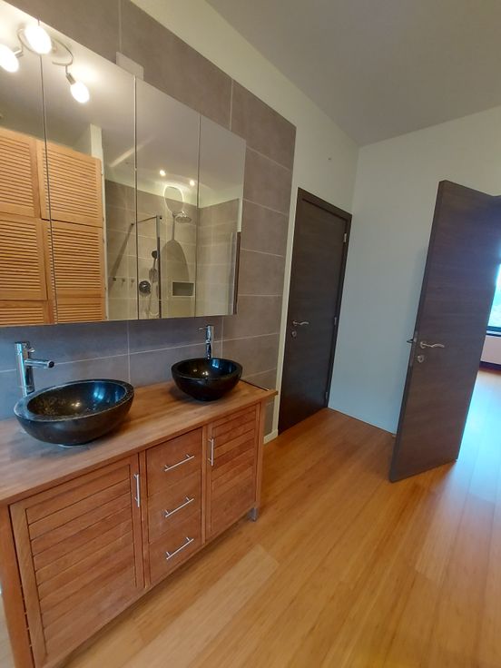 Le 1er étage offre une suite parentale avec une chambre à coucher disposant de salle de bains+douche, des toilettes séparés et un dressing.
