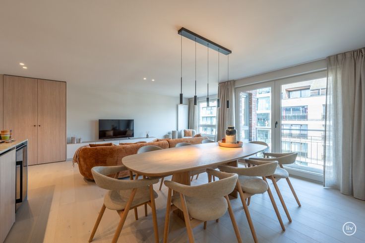 Uniek gerenoveerd appartement met een prachtige gevelbreedte centraal gelegen op de Lippenslaan te Knokke. Indeling: Inkomhall met vestiairekast en gastentoilet, aangename, brede leefruimte met veel lichtinval, en toegang tot het terras voorraan, ruime open keuken voorzien van alle comfort met wijnfrigo, aparte berging met aansluiting voor wasmachine.3 volwaardige slaapkamers, telkens met hun eigen bad of douchekamer. Terras langs achter.