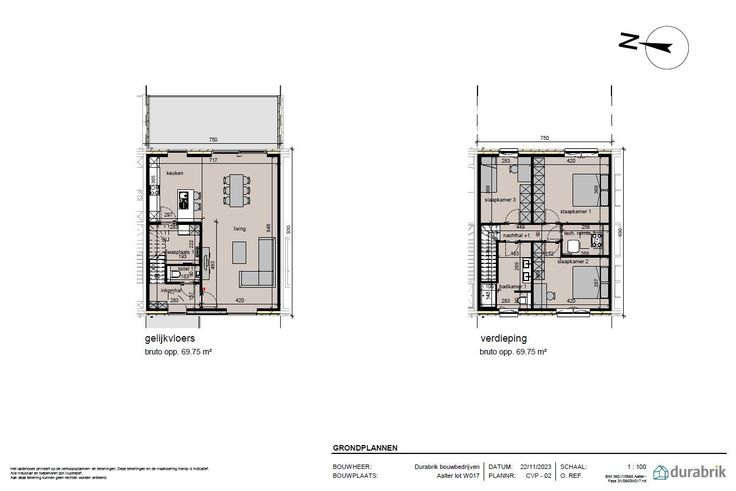 Lot 17 is een gesloten bebouwing in moderne stijl op een grondopp. van 202 m² en met een totale bewoonbare opp. van 140 m². Energieneutrale woning (E -26) door doorgedreven isolatiepakket, ventilatiesysteem D, groot pakket zonnepanelen en warmtepomp.  GELIJKVLOERS : inkom, wc, ruime living met open keuken, en bergruimte. EERSTE VERDIEPING: 1 slpk voor de ouders, 2 kinderkamers, aparte wc, badkamer ingericht met ligbad, inloopdouche en badkamermeubel met dubbele lavabo, technische ruimte. De woning is volledig afgewerkt waarbij laminaat in de kamers en het terras ook voorzien zijn. De woning kan snel bewoond worden! Volledig afgewerkt, snel instapklaar, omheining is inbegrepen. Deze woning ligt in een nieuw woonproject in de Sint-Jozefstraat in Aalter. Prima ligging ! Centrum Aalter vlakbij, E40 zeer vlot bereikbaar, diverse sportmogelijkheden in de buurt.  EXTRA TROEVEN: . Prijs excl. btw en kosten. Bij Durabrik ben je zeker van een vaste prijs na ondertekening van je contract. Geen budgettaire verrassingen dus tijdens je bouwtraject. Download de brochure op https://durabrik.immo/aalter.  Heb je vragen? Contacteer dan je bouwadviseur via 0800 62 732 of mail naar info@durabrik.be  * Beelden en oppervlaktes zijn indicatief. Renovatieplicht: nee