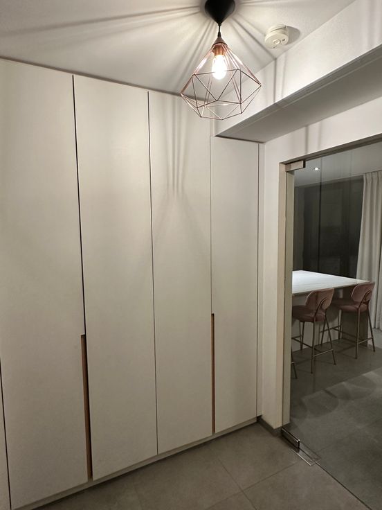 - Opbergruimte: Inbouwkasten in inkom en slaapkamer