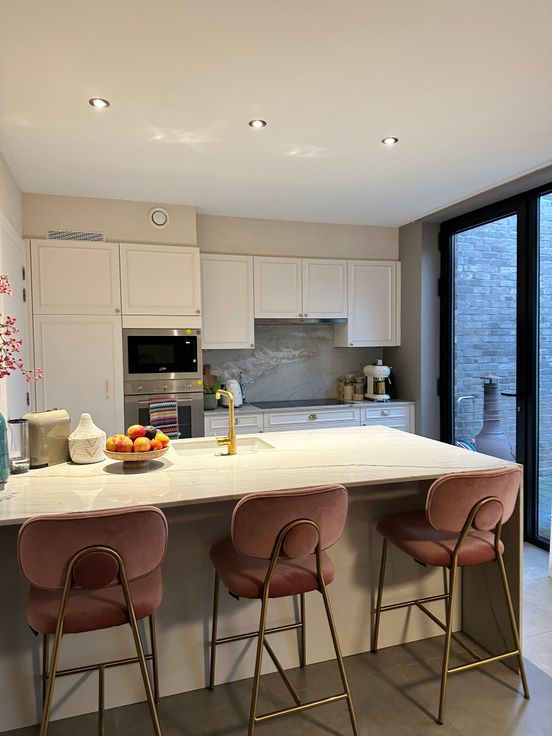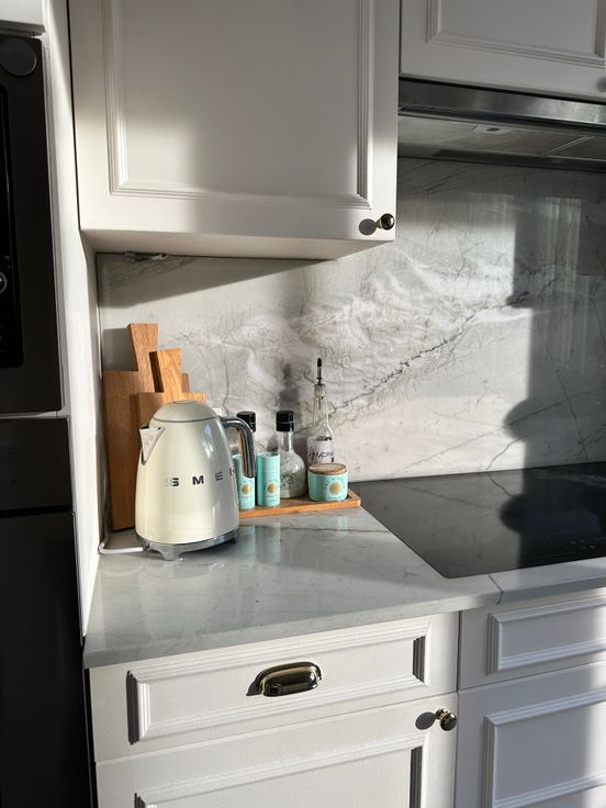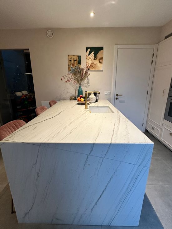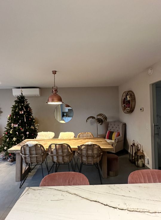 - Keuken: Verbouwd in 2022, voorzien van een gròhe goudkleurige kraan, kwartsiet Mont Blanc werkblad, pompbak en een grote inductie kookplaat.