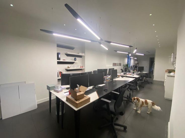 Er zijn bureaus, schermen en bureaustoelen, maar deze kunnen ook weer weg.