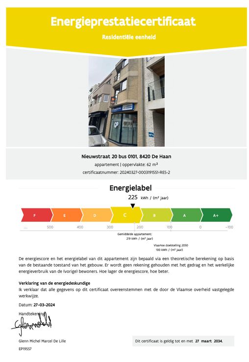 Bestaande uit : inkomhal, apart toilet, badkamer met dubbele lavabo en douche, living met toegang naar het balkon vooraan, open keuken met frigo (+ diepvries), vaatwasser, 4-pits keramische kookplaat en een combi-oven, 1 volwaardige slaapkamer met 2-persoonsbed en wandmeubel, 2e slaapkamer met slaapbank maar plaats voor 2-persoonsbed en toegang tot groot terras aan achterkant (+/- 12m² en zéér recentelijk nog vernieuwd)