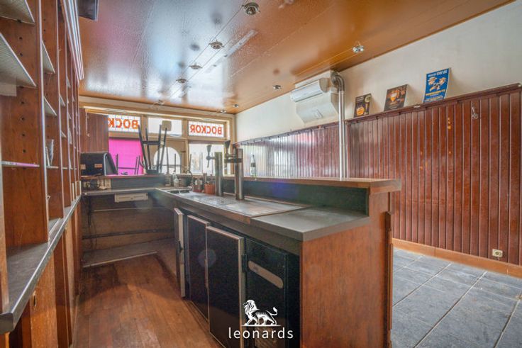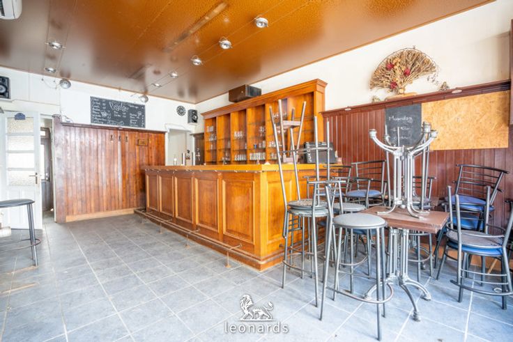 Op het gelijkvloers vindt u een voormalig café met bar, dat zich uitstekend leent voor commerciële doeleinden. Verder is er een leefruimte, een toilet, een badkamer en een koer, die extra ruimte biedt voor uitbreiding of een gezellige buitenruimte.