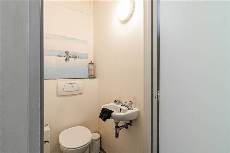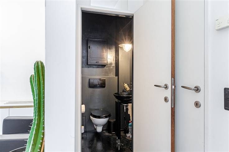Het handelsgelijkvloers maakt deel uit van een gebouw van 2 hoog, dat in goede staat verkeert. Dankzij de kleinschaligheid zijn er geen gemeenschappelijke maandelijkse kosten te betalen. De handelszaak bestaat vooraan uit een open ruimte van 30 m² met een gevelbreed raam, waardoor er een aangename hoeveelheid natuurlijk licht binnenvalt. Er zijj meerdere ingemaakte kasten voorhanden. Centraal op het gelijkvloers is er een kamer van 8 m² te vinden en achteraan is er nog een ruimte van 8 m², ideaal als berging of opslag. Verder zijn er nog 2 aparte wc’s aanwezig in het pand.