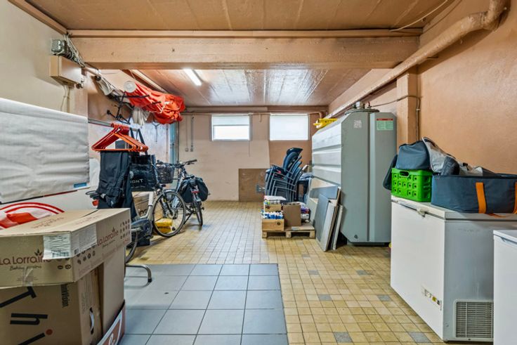 Feestzaal De Vos, voorheen een actieve feestlocatie, biedt nog steeds veel mogelijkheden. Op straatniveau bevindt zich de voormalige ruime feestzaal met ontvangstruimte, keuken en sanitair blok (301 m²). Op het niveau van de parking is er een woonst met ruime opslagmogelijkheden. De indeling van de woonst omvat een woonkamer met open keuken (66 m²), drie slaapkamers (19 m², 13 m² en 10 m²), een bureau (18 m²), een badkamer, een toilet, een hal en diverse bergingen met een totale oppervlakte van 52 m².