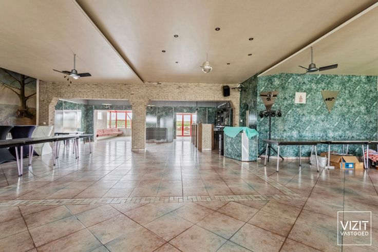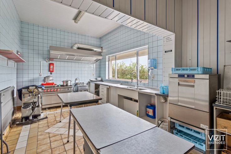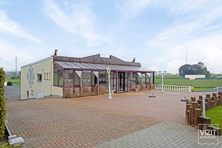Aan beide zijden van het gebouw is er toegang tot de ruime parking, die plaats biedt aan ongeveer 80 wagens. Achter de parking ligt nog een weiland. Er is geen overname van het handelsfonds voorzien. Vergund als feestzaal.