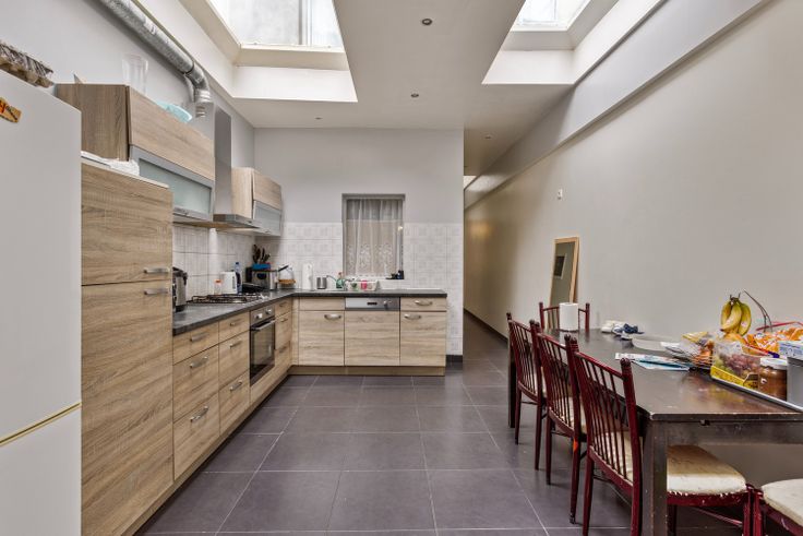 Deze goed onderhouden woning biedt een zee van ruimte, ideaal voor grote gezinnen. De indeling als volgt: op het gelijkvloers bevinden zich de inpandige garage, ruime leefruimte met eetkamer, volledig geïnstalleerde keuken, slaapkamer en badkamer met douche. Op de 1ste verdieping als de tweed hebben we telkens dezelfde indeling, dit dus 3 slaapkamers waarvan 2 volwaardige zéér ruime slaapkamers en 1 een doorloop (kinder)kamer tussen de badkamer en slaapkamer. In totaal telt deze woning dus 7 slaapkamers. De badkamers op de verdiepingen zijn ingericht met toilet, douche en wastafel. Verder is de woning uitgerust met dubbele beglazing en werd het dak geïsoleerd volgens de hedendaagse normen. EPC in opmaak Renovatieplicht: onbekend