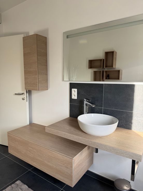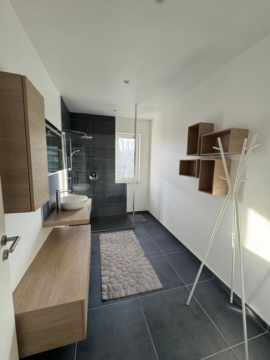 D’une salle de bain avec 1 lavabo (vasque) une douche à l’italienne