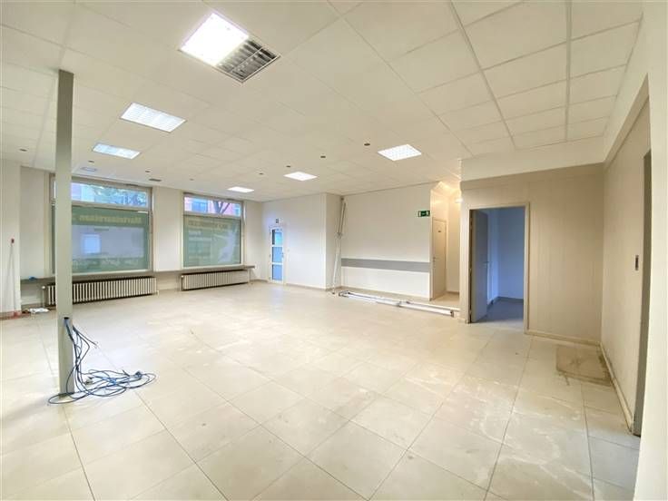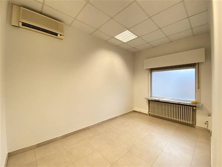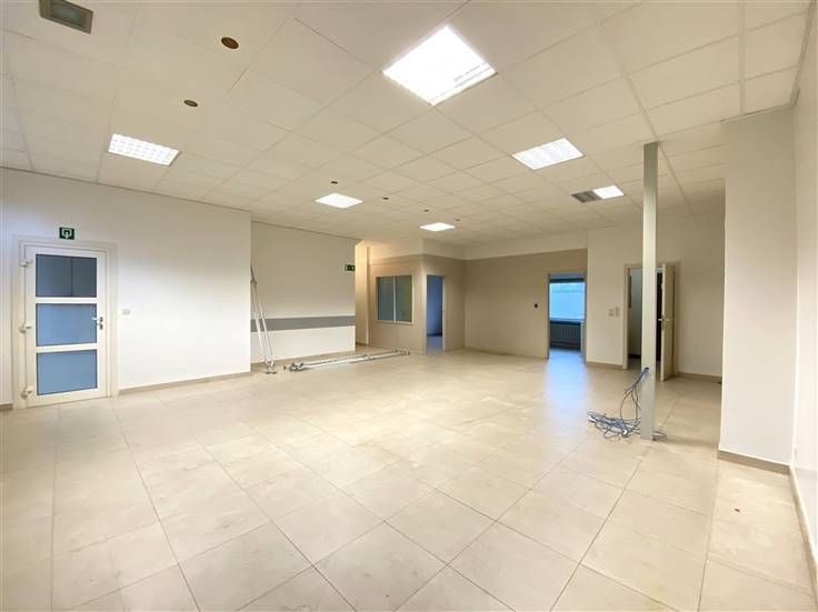 Binnenin verwelkomt een grote, open ruimte gevuld met natuurlijk licht, perfect om in te richten naar uw eigen wensen. De bijkomende ruimtes kunnen dienen als bureaus of vergaderzalen, met voorzieningen zoals airconditioning voor een aangenaam werkklimaat.