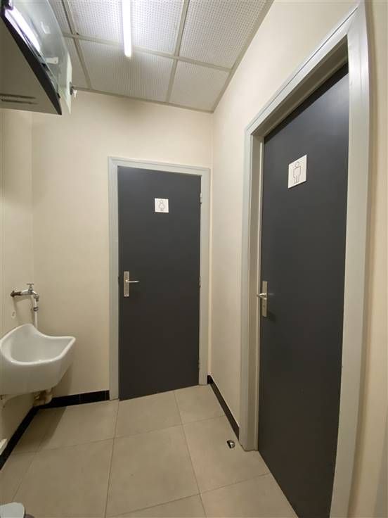 De kitchenette biedt een praktische oplossing voor personeelspauzes, terwijl de aparte toiletvoorzieningen het comfort verhogen.