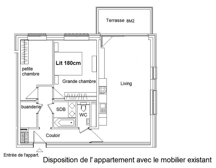 Cuisine équipée complète, meuble TV avec support pour la TV , grande chambre de 15m2 avec lit de 180cm et 2 tables de nuit et un grand dressing. 2ème chambre de 10M2 avec dressing, une salle de bain , un WC séparé et une buanderie . Une cave et un emplacement de parking dans le garage. Possibilité de se garer à 100m sur un parking gratuit.