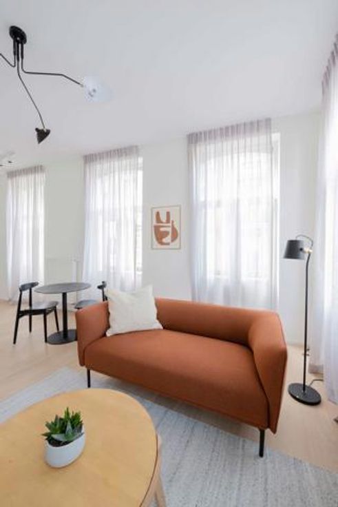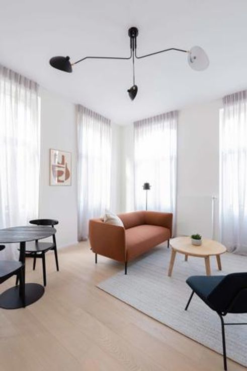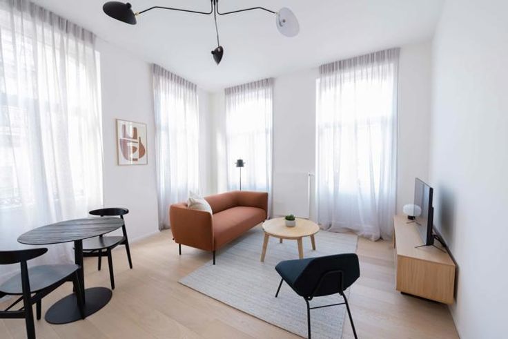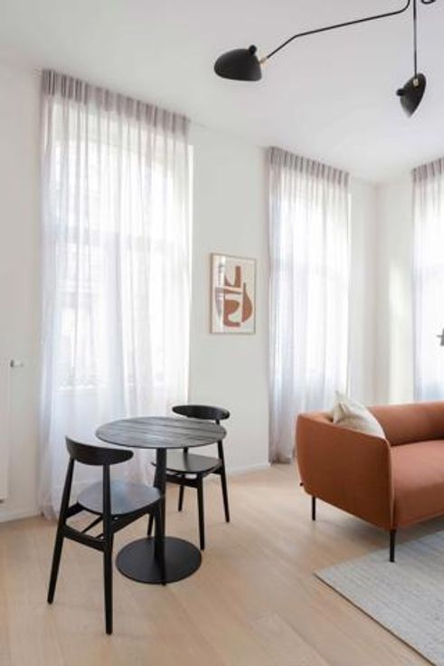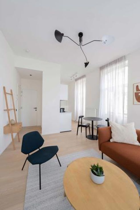 Available in March - DOWNTOWN - Bathim&CO offers you a beautiful 1-bedroom flat, completely renovated and tastefully furnished, located at the beginning of the pedestrian zone in the immediate vicinity of De Brouckère. This pleasant ² flat is on the 2nd floor of a magnificent small French-style building of high standing. It comprises an entrance hall, a large living room with plenty of natural light thanks to its large picture windows, a fully-equipped kitchen (oven, hob, extractor fan, fridge, freezer, dishwasher), a separate bedroom, a shower room and a separate WC. Numerous shops, restaurants and transport links within walking distance. Parquet flooring throughout, double glazing, reinforced door. Flat rate for utilities: 120€/month (internet, television, utilities, insurance, boiler maintenance). Visit with Sascha from Bathim&CO!