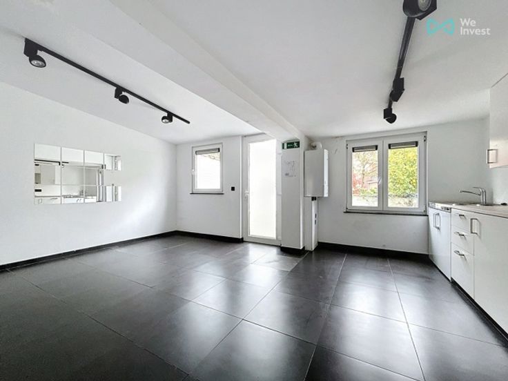 Het pand bestaat uit een appartement van 60 m² met toegang tot een kelderruimte die gedeeld wordt met de rest van het gebouw. Je hebt ook toegang tot een kleine privébinnenplaats van 25 m² aan de achterkant.