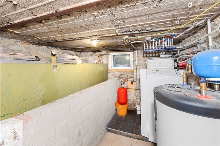 Chauffage et production d'eau chaude : mazout avec citerne aérienne en cave.