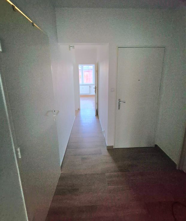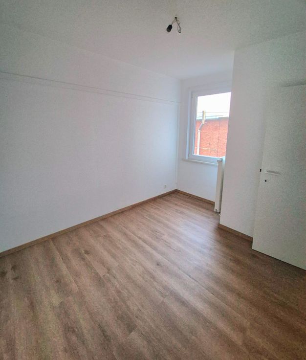 Appartement au 6ème étage entièrement rénové Lumineux, pas de vis-à-vis direct Accès transports en commun, proche gare, commerces et toutes commodités. Comprenant : hall d’entrée (6 m2), séjour avec cuisine ouverte (30 m2), 2 chambres (9 m2 et 10 m2), salle de douche ( 4 m2), petite terrasse avant (2 m2), cave. • Electricité conforme • Chauffage central au mazout : nouveaux radiateurs. • Cuisine équipée neuve (lave-vaisselle, four, frigo) • Châssis en PVC récents. • Ascenseur • Charges mensuelles : +/- 200€/mois.