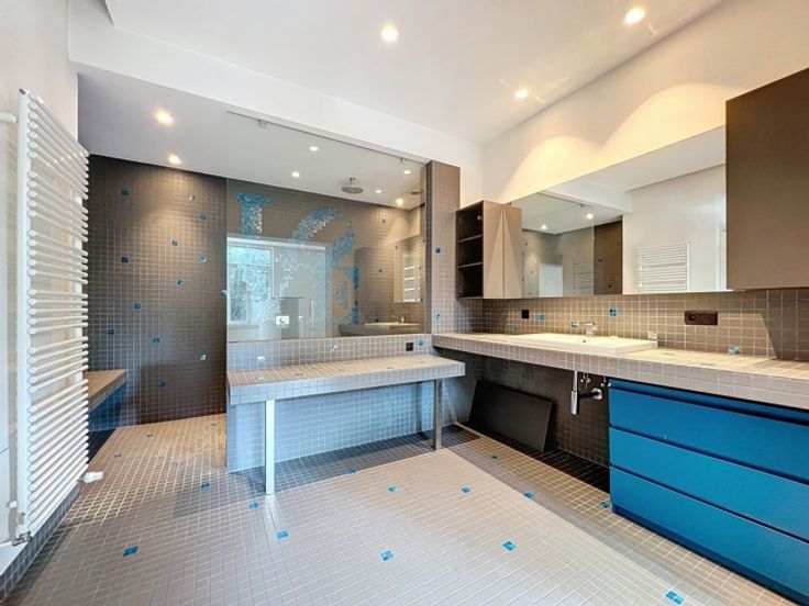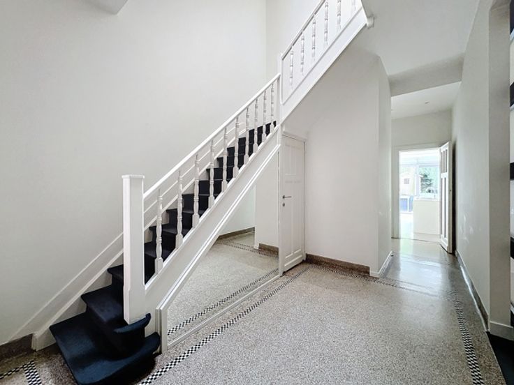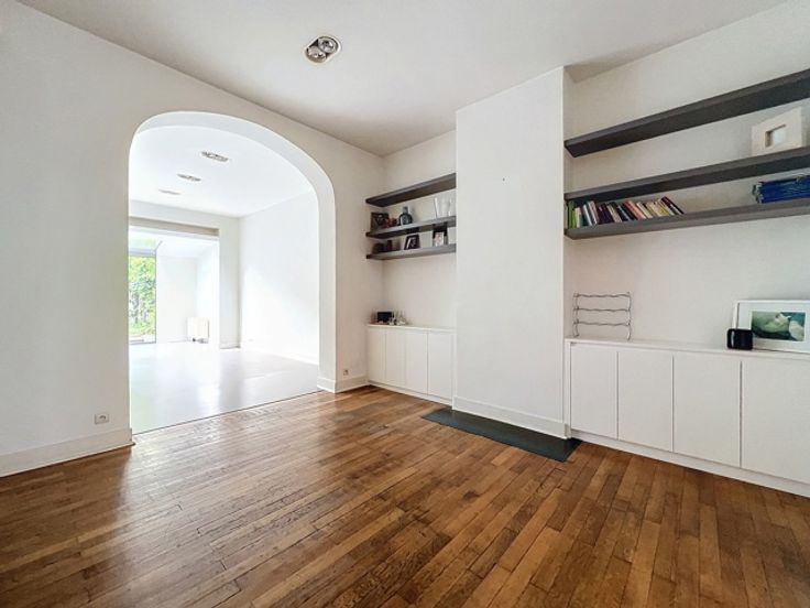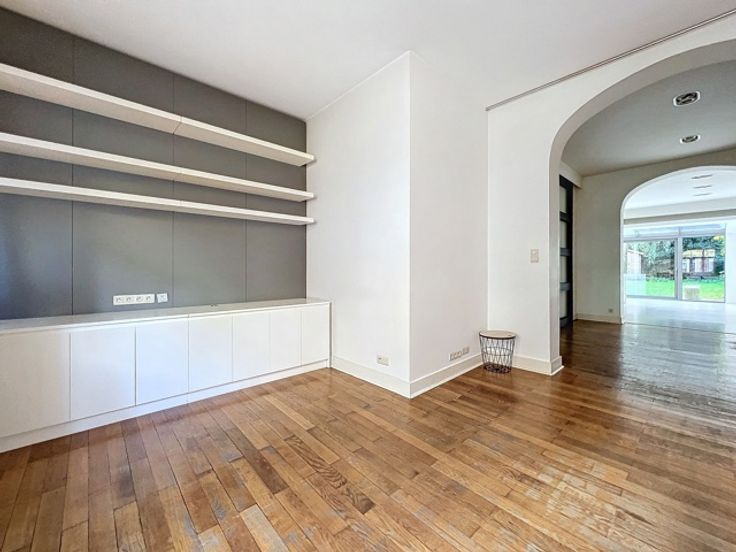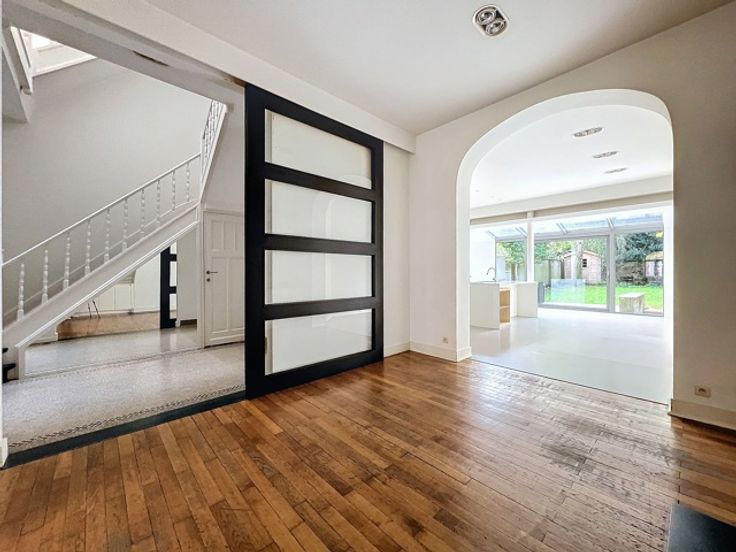Georges Henri, prachtige eengezinswoning van ± 353 m² bruto met tuin. Het is als volgt samengesteld: Inkomhal van ± 3,7 m², tweede hal van ± 16,2 m² met apart toilet van ± 1,2 m², woonkamer van ± 21,1 m², eetkamer van ± 14,9 m², ingerichte keuken van ± 40,8 m² met tweede eetkamer kamer, tuin op het westen van ± 104 m² waarvan ± 18 m² omgebouwd tot terras, hoofdslaapkamer van ± 33,8 m² met kleedkamer en aangrenzende doucheruimte van ± 14,4 m², 4 slaapkamers van ± 20, 16,9, 16 en 9,1 m², badkamer van ± 11,2 m², kantoor, 2 aparte toiletten. Verder: dubbele beglazing, parketvloer, intercom, airconditioning in de hoofdslaapkamer, wasruimte, gasboiler. Grote kelders. PEB: E+. Om zo snel mogelijk te ontdekken!