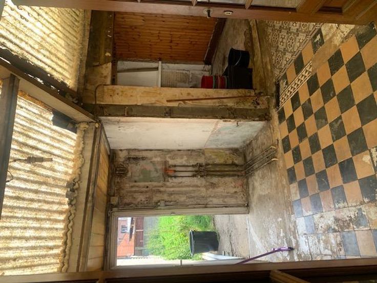 Immeuble de plain pied à restaurer complètement. Double vitrage et châssis PVC à l'avant. L'immeuble compte une pièce living - cuisine, une chambre un jardin et est proche des commerces, transports et écoles.