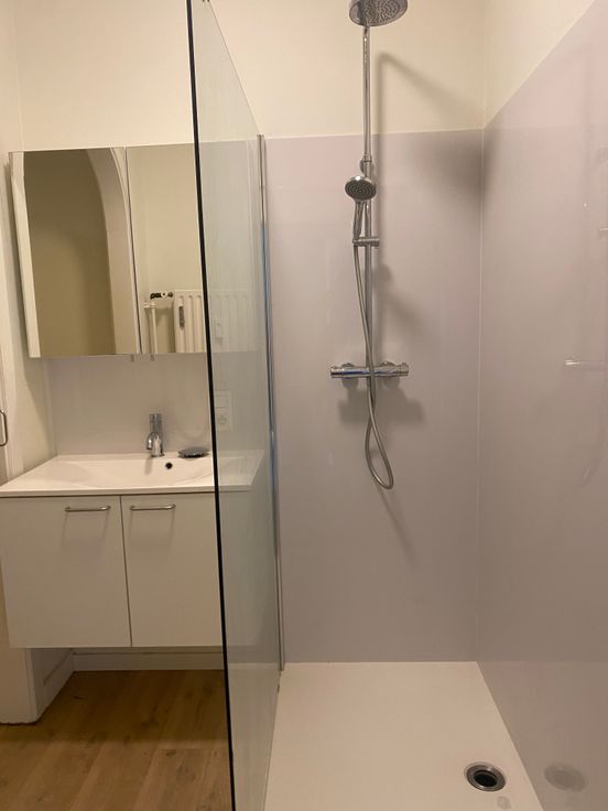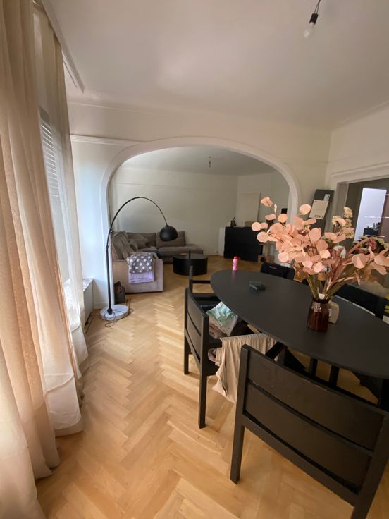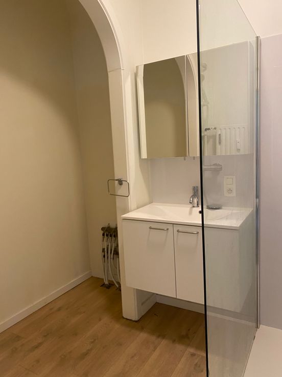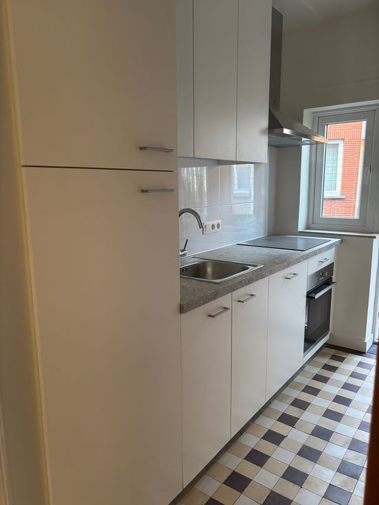 Dit gerenoveerde appartement combineert charme met moderne technologie. Uitgerust met een warmtepomp en ventilatie-unit geniet je steeds van een aangenaam binnenklimaat (ook in de zomer want dat geeft de warmtepomp koelte). Het ruime appartement straalt karakter uit dankzij de authentieke elementen. De splinternieuwe keuken heeft alles wat je nodig hebt: een grote koelkast met vriesvak (103 cm), een keramisch kookvuur met 4 zones, een oven, dampkap en vaatwasser. Bovendien beschikt het appartement over een nieuw ingerichte badkamer en een aparte WC met handewasser. Kosten: €100/maand provisie voor water en onderhoud van het gebouw.