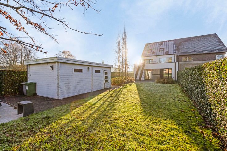 benoemenswaardige kenmerken zijn het groendak (2023), volledige domotica, warmte pomp, ingebouwde design verlichting, automatische poort met camera, conform gekeurde elektrische installatie, een anti-inbraakinstallatie, open haard, toiletten met waterrecuperatie, automatische zonnewering, verzonken stopcontacten, aangelegde tuin van 341m2