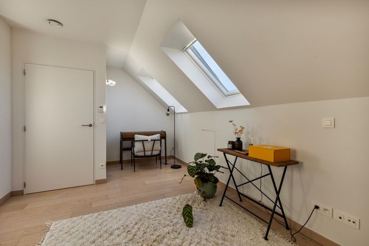 Deze uitzonderlijke duplex met een weids open zicht, verkeert in een uitzonderlijke staat van onderhoud. Opmerkelijk is de mooie lichtinval die te danken is aan de vele raampartijen en het grote groendak met terras dat aansluit aan de sfeervolle leef- en eetruimte die tevens voorzien is met open haard, parket en natuurstenen vloeren.