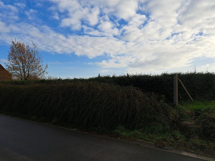 Le terrain dispose de haies existantes, de clôtures, d'une vue sur les champs (zone agricole), la pierre de Brunehaut et l'église d'Hollain.