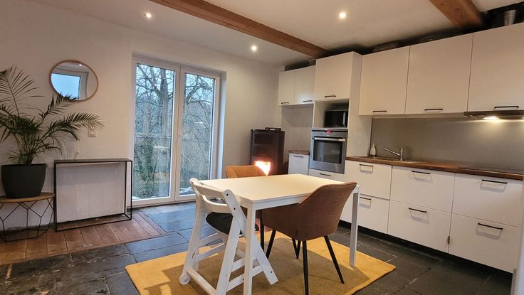Elle se divise en 3 plateaux de 35m². Au rez une cuisine ouverte sur son salon accueille le charme d’une flamme d’un poêle à pellet « hydro » chauffage central. Au 1er étage une grande chambre de 18 m², une salle de douche avec son évier unique datant des débuts des années 1900, une toilette séparée et un hall en parquet d’époque ne pourront que vous charmer. Au 2ème étage un espace de 15 m² pouvant être un espace dressing, un bureau ou une chambre supplémentaire est accompagné d’une seconde chambre de 18 m² mansardée qui offre la plus belle vue des environs sur la vallée de la Meuse.