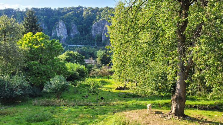 Vue exceptionnelle sur la Meuse et les falaises de Marche-les-Dames, offrant un spectacle unique à chaque saison. Le jardin arboré et la mare vous feront découvrir les joies de la cueillette de l’ail des ours, des cerises et des noix.