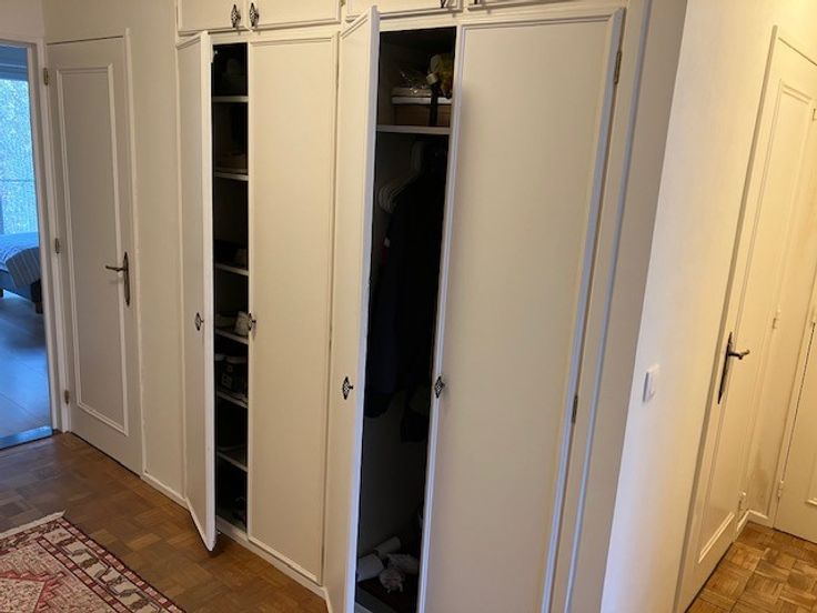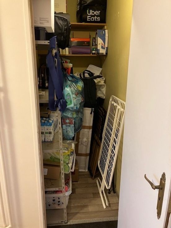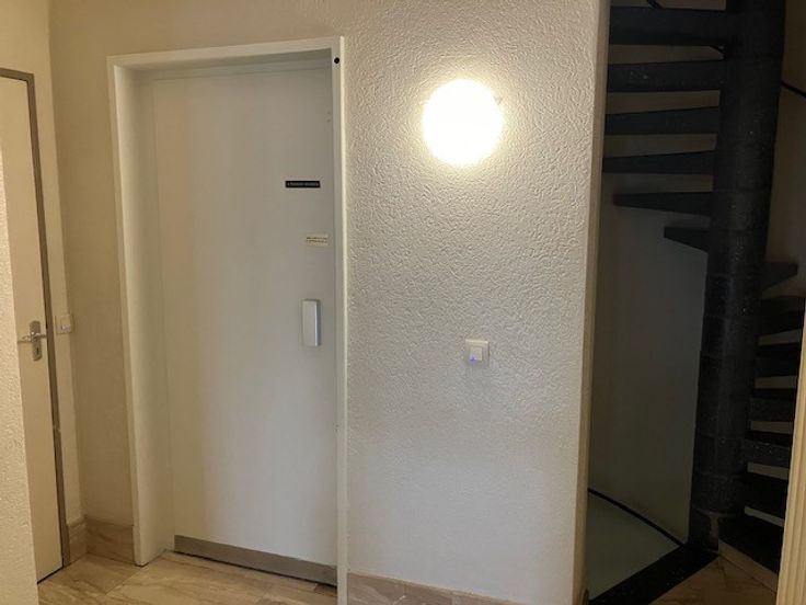 De inkomhal is praktisch en stijlvol, met een garderobe, een gastentoilet en twee opbergruimten. De badkamer is en-suite verbonden met de hoofdslaapkamer, terwijl de keuken is uitgerust met een elektrisch fornuis voor eenvoudig koken. Extra opbergruimte is beschikbaar binnen het appartement en er is een extra opslagruimte op de begane grond. Het appartement wordt verwarmd door centrale verwarming en beschikt over nieuw geïnstalleerde radiatoren voor optimaal comfort gedurende het hele jaar.