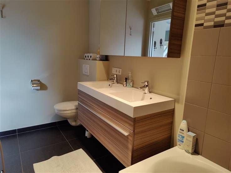 Ontdek dit charmant dakappartement in hartje Erembodegem, met een bewoonbare oppervlakte van 110m². Dit eigentijdse appartement biedt twee ruime slaapkamers. De lichte woonkamer nodigt uit tot gezelligheid, met een moderne eetkamer die aansluit en een balkon dat een prachtig uitzicht biedt. De keuken is modern ingericht en uitgerust met hoogwaardige apparatuur; De badkamer is voorzien van een dubbel wastafelmeubel en een luxueus bad, waardoor comfort centraal staat. Alsook aan de tweede slaapkamer is er een douchekamer voorzien met lavabo. Dit appartement bevindt zich in een groene omgeving, dichtbij het centrum van Erembodegem, met alle nodige voorzieningen binnen handbereik. Parkeergelegenheid is ruim voorhanden in de omgeving. Een ideale woonst voor wie stijl, comfort en een uitstekende locatie waardeert. In de huurprijs is ook een autostaanplaats inbegrepen. De huurprijs bedraagt 910 euro + 80 euro gemeenschappelijke kosten. Het appartement is beschikbaar vanaf 1/12/2024.
