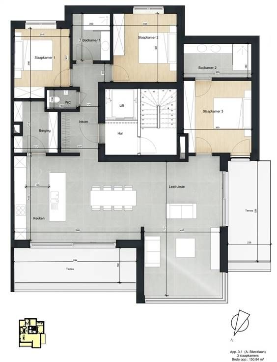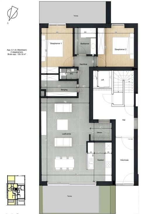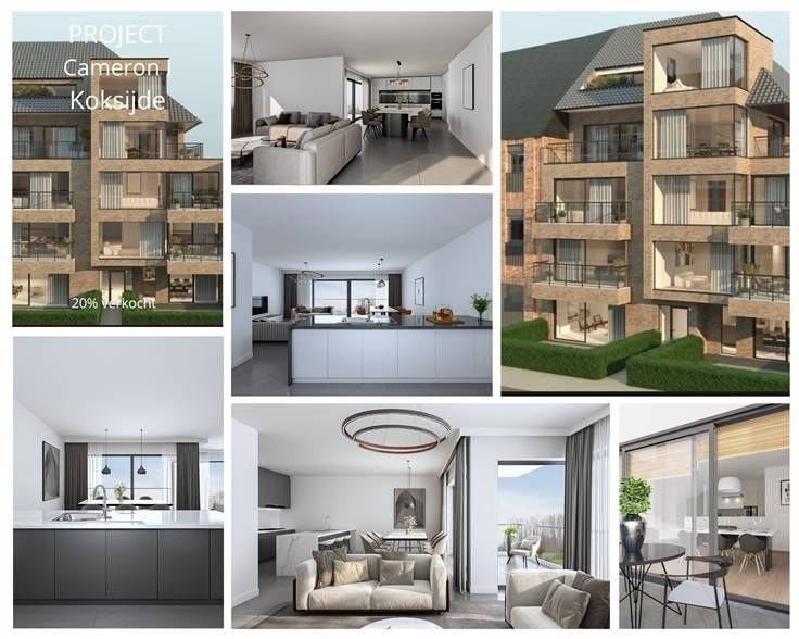Ontdek Residentie Cameron I. Cameron I biedt een unieke nieuwbouwervaring op een toplocatie in Koksijde. Gelegen in de rustige Albert Bliecklaan nr. 13, bevindt u zich op minder dan 800 meter van zee en strand, en slechts 100 meter van de levendige winkelstraat. Geniet van prachtige uitzichten over authentieke villa’s, een brede straat zonder inkijk, en alle voorzieningen binnen handbereik. Dit kleinschalige project bestaat uit slechts 8 luxueuze appartementen, ideaal als vaste woonst (met mogelijkheid tot aankoop aan 6% BTW!) of als exclusief tweede verblijf. Elk appartement beschikt over minimaal één ruim terras, wat zorgt voor een optimaal buitenleven. Ruimte en Licht Met gevelbreedtes variërend van minimaal 6,30 meter totbijna 11 meter, bieden de appartementen een ongeëvenaarde ruimtebeleving aan de westkust. Plafondhoogtes van 2,62 meter tot 2,70 meter zorgen voor een gevoel van ruimte en maximale lichtinval. Residentie Cameron I vormt samen met Cameron II, gelegen aan de Jaak Van Buggenthoutlaan 14 en bestaande uit 3 appartementen, een harmonieus geheel door hun moderne maar tijdloze architectuur. Dit ontwerp biedt een visueel aantrekkelijk en consistent wooncomplex. Diverse ruime garages tussen de twee gebouwen zijn optioneel bij te kopen, en ondergrondse bergingen zijn eveneens beschikbaar.