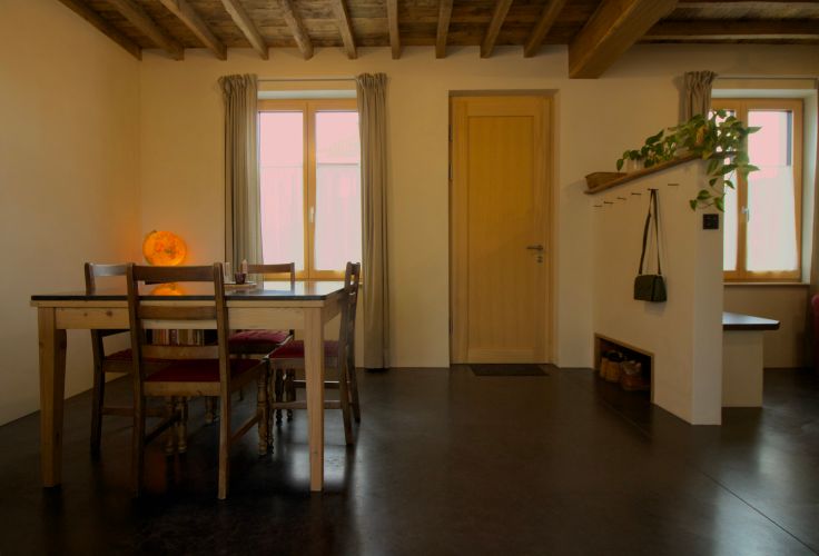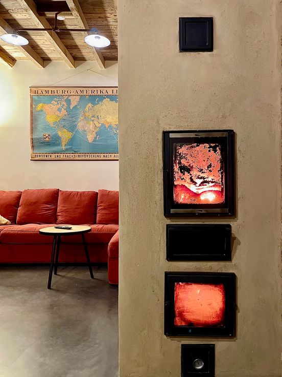 Dankzij een finoven op hout wordt de wandverwarming, vloerverwarming en het warm water efficiënt geregeld. Voor de zomer is er een zonneboiler aanwezig. Regenwater wordt opgevangen in een reservoir van 10.000 liter, dat onder andere gebruikt wordt voor toiletten, buitenkranen en eventueel de wasmachine.
