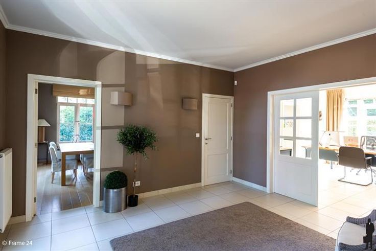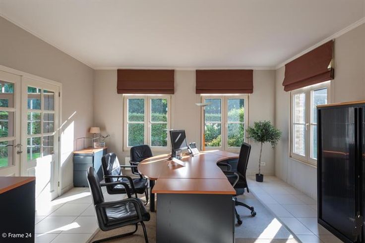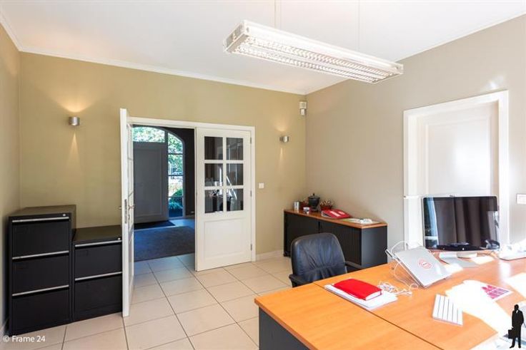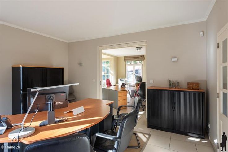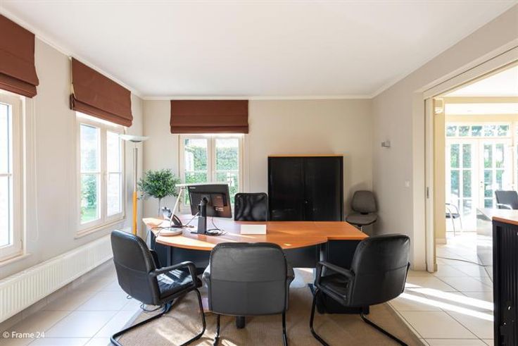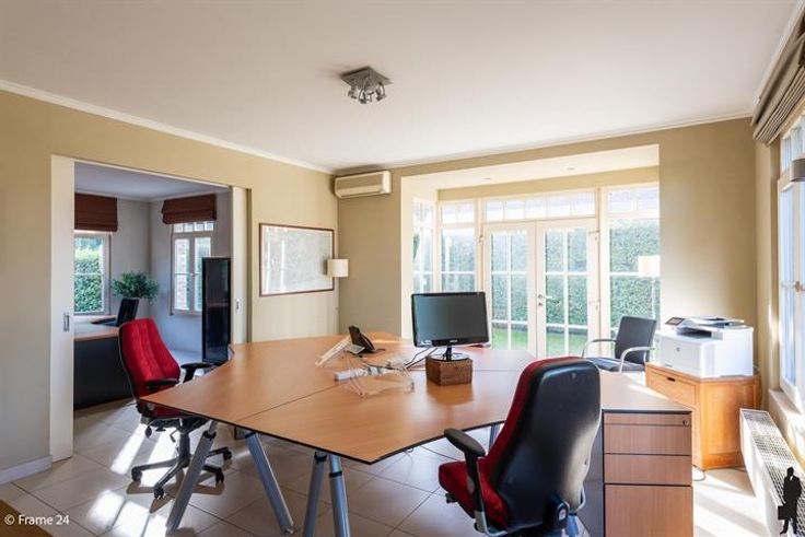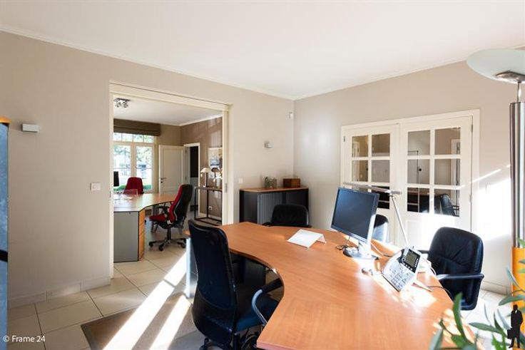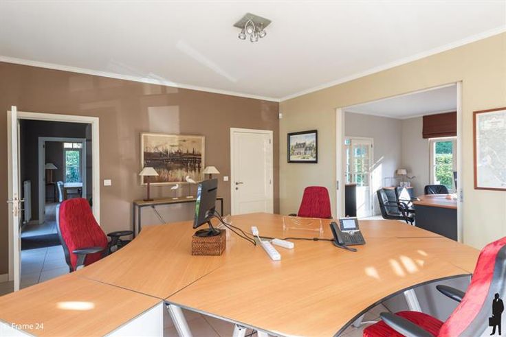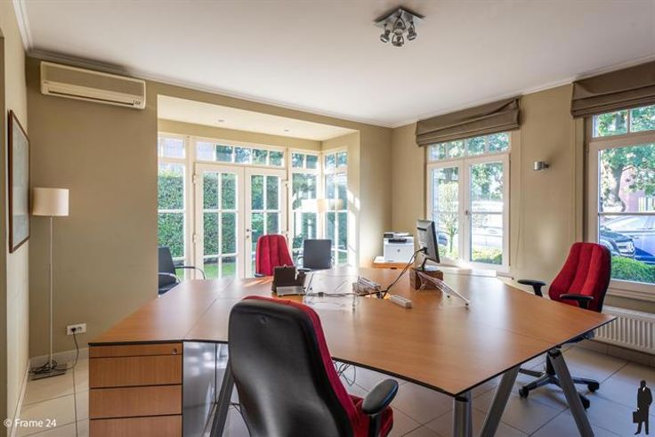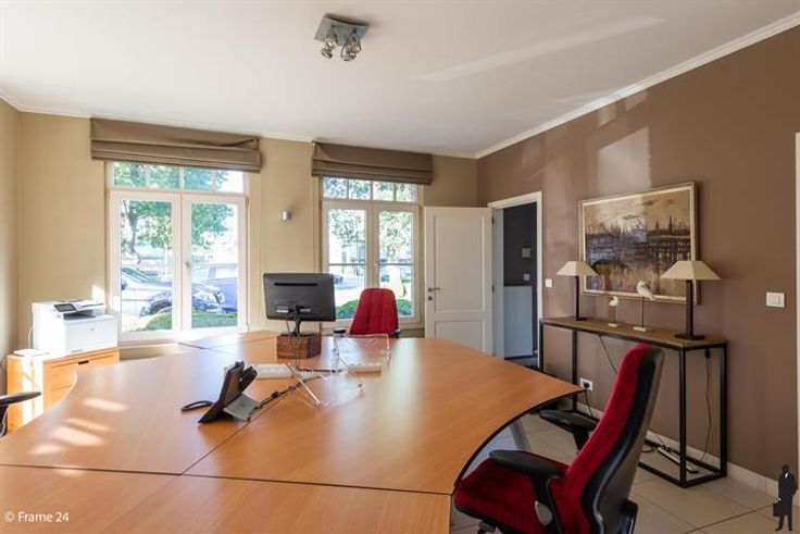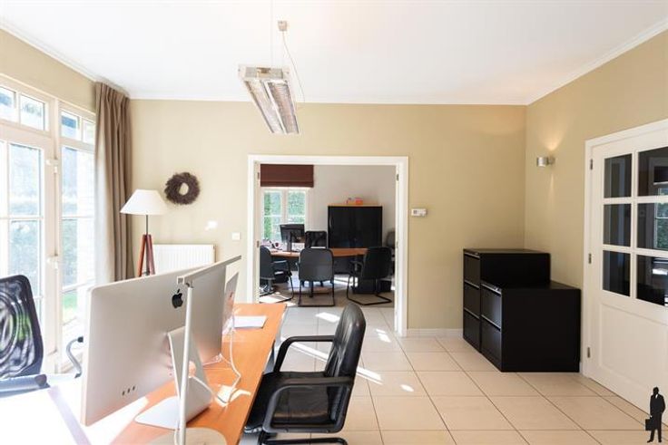Ruim Kantoor-villa langs gewestweg (passage). Inkomhall met wachtruimte in landelijke stijl (meubilair voorzien) Ruim secretariaat en 3 ruime kantoren. Alle ruimtes hebben vloerstopcontacten en aansluitingen voor internet. Aparte keuken met ingebouwde kasten en kitchenette. Huurprijs is inclusief gemeenschappelijke lasten en 7 parkeerplaatsen. Ideaal voor vrije beroepen.