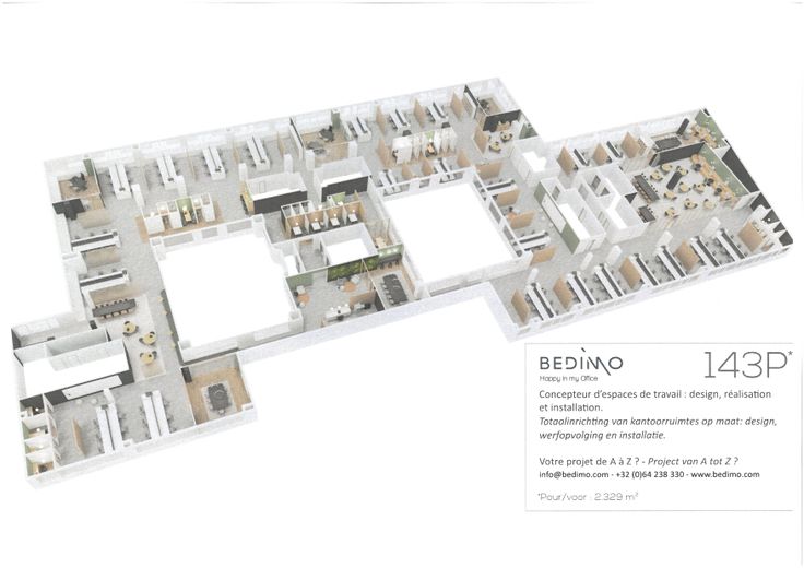 Deze lichtrijke kantoren, met ramen voor-en achteraan, bevatten de volledige derde verdieping rondom twee atriums en hebben voldoende privatief sanitair en diverse liften.