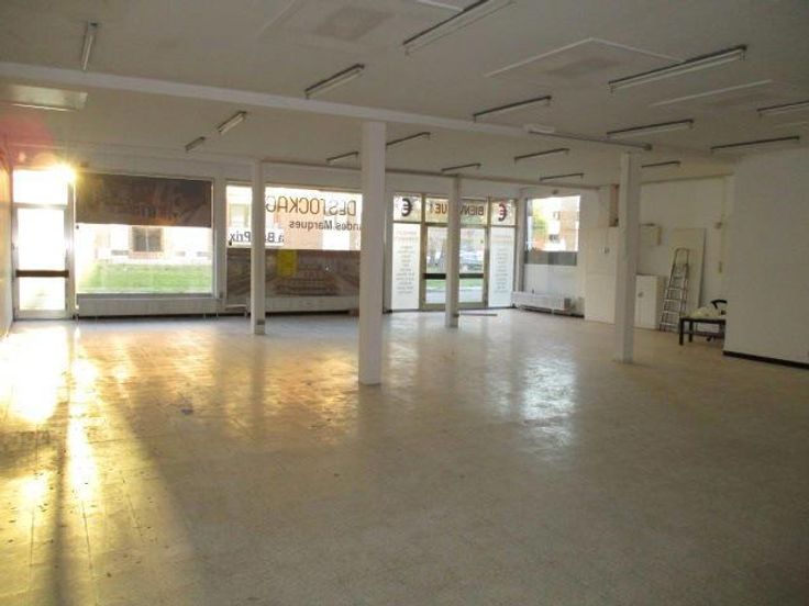 Belle surface commerciale vitrée de 200 m² avec dépendances ou entrepôt de 200 m² et garages, parkings privé et public aisé. Libre d'occupation. Convient pour tous commerces ou autres.