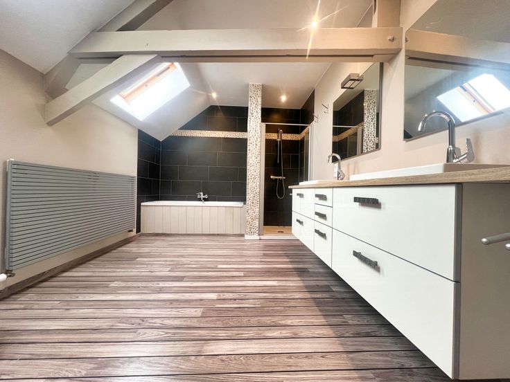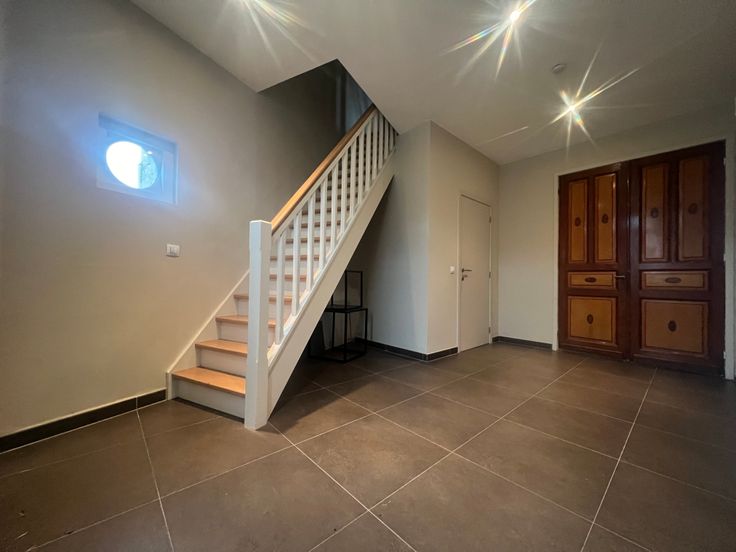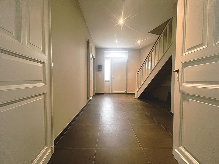 Via de vaste trap in de inkomhal, bereiken we het eerste verdiep. De eerste verdieping bestaat uit 4 volwaardige slaapkamers, waarvan 3 royale slaapkamers. Alsook beschikt het verdiep over een volledige ingerichte badkamer, voorzien van een dubbele lavabomeubel, ligbad, douche + toilet. Het eerste verdiep biedt eveneens toegang tot de zolderruimte.
