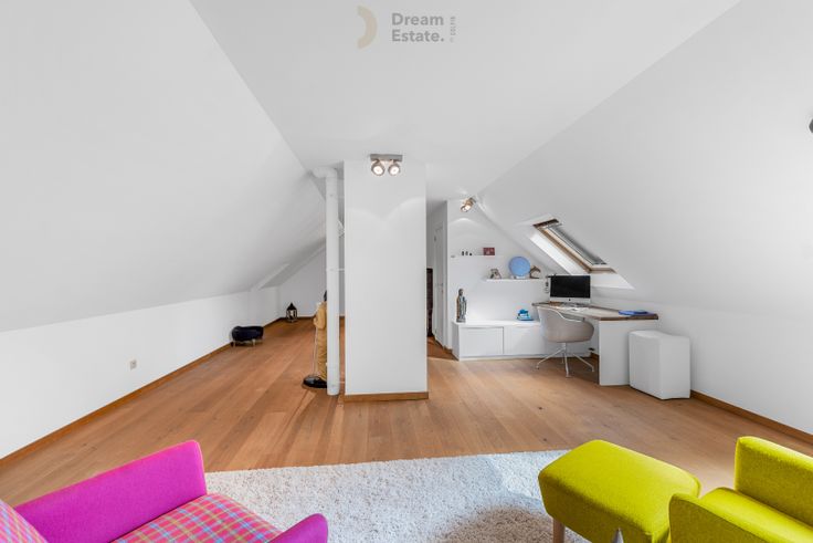 In de prestigieuze Bisschopsdreef vindt u deze prachtige woning temidden de bomen en op wandelafstand van het bruisende Brugge. Kom ontdek en geniet van deze uitzonderlijke parel gelegen aan de Brugse stadsrand. De woning bestaat momenteel uit 2 afzonderlijke entiteiten en belichaamt de perfecte combinatie van wonen en werken. Mits een kleine investeringskost (dichtmetselen doorgang) kan deze woning gemakkelijk gescheiden worden. Momenteel bestaat de woning uit een ruime inkomhal met vestiaire. Een uiterst lichtrijke leefruimte  ingericht met een prachtige gashaard, uitkijkend op de praktisch aangelegde tuin. De keuken werd ingericht en voorzien van alle comfort (inductie kookplaat, werkblad in composiet, bordenverwarmer, ...) en een wasplaats met aansluiting voor wasmachine en droogkast. Naast de ruime oprit, die plaats kan bieden aan zeker 3 auto's, voorzien is van elektrische laadpalen en beschikt over een elektrische poort,  beschikt de woning nog over een ruime inpandige garagebox, volledig ingericht met een kastenwand. De 1ste verdieping beschikt over een ruime overloop die werd ingericht met verschillende maatkasten, 2 grote slaapkamers die elk werden afgewerkt met ingebouwde kasten, apart toilet, een douchekamer met douche, Masterbedroom met aanpalende dressing en ensuite badkamer (ingericht met ligbad, inloopdouche, dubbel lavabomeubel en toilet). De bovenverdieping bestaat uit een gezellig ingerichte ruimte die perfect kan dienst doen... Renovatieplicht: onbekend
