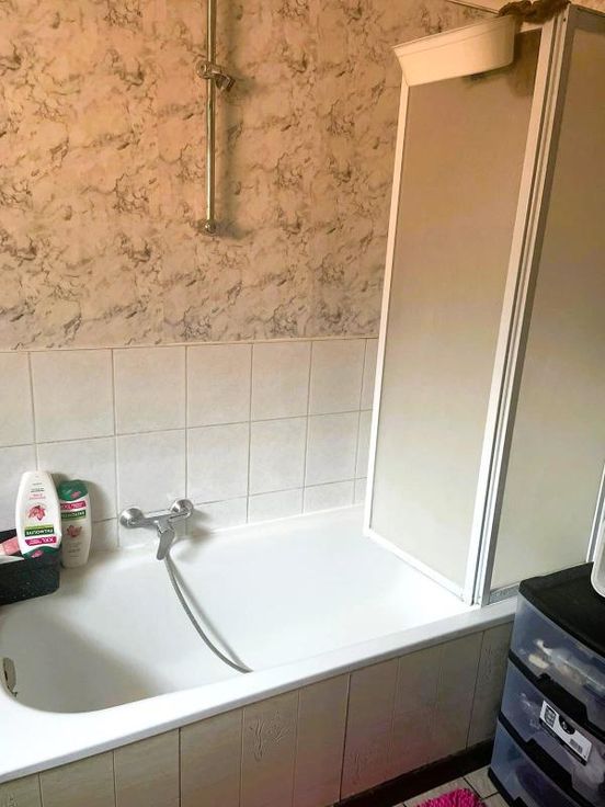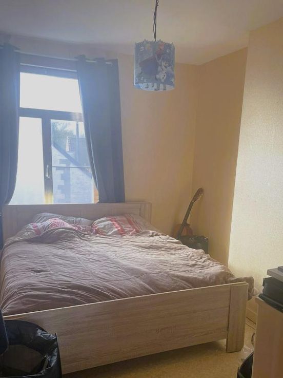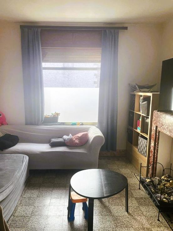 Louée en vertu d'un bail Loyer : 600€/mois - Garantie locative : 1.200€ Sous-sol : Cave sèche Rez-de-chaussée : Hall d'entrée - Living - Cuisine non équipée - Arrière-cuisine - Salle de bain (Baignoire/Douche, Lavabo simple, WC) - Buanderie Etage : Hall de nuit - Deux chambres Sous les combles : Grenier aménageable Dépendances : Cour - Jardin Commodités : Egout - Eau de ville - Gaz de ville - Electricité - Téléphone - Télédistribution - Citerne d'eau de pluie (non fonctionnelle) - Châssis en aluminium - Simple vitrage - Un volet en bas à l'avant - Poêles au gaz Parcelle non soumise à des obligations au regard du Décret Sol