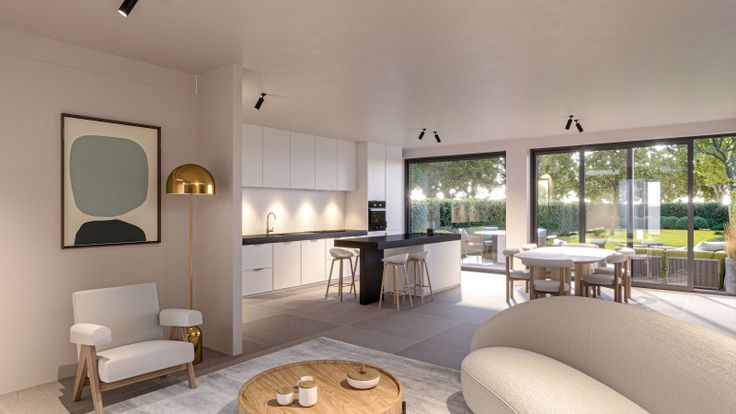 De nieuwbouwwoningen zijn centraal gelegen in Lebbeke, in de nabijheid van scholen, banken, supermarkten. De woonkamer geeft uit op de tuin met een groen uitzicht zonder directe achterburen.