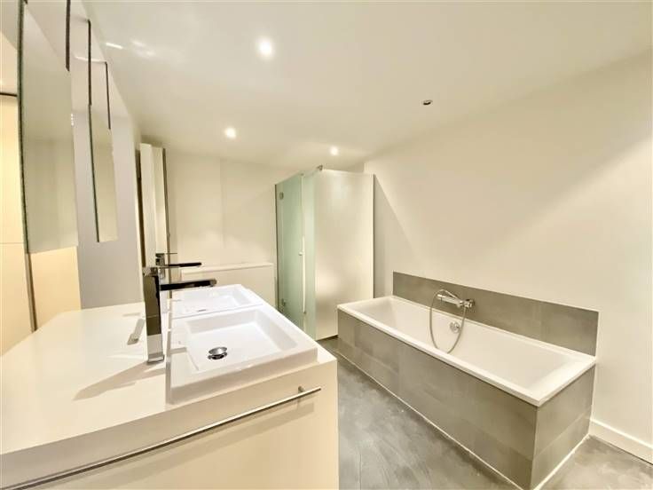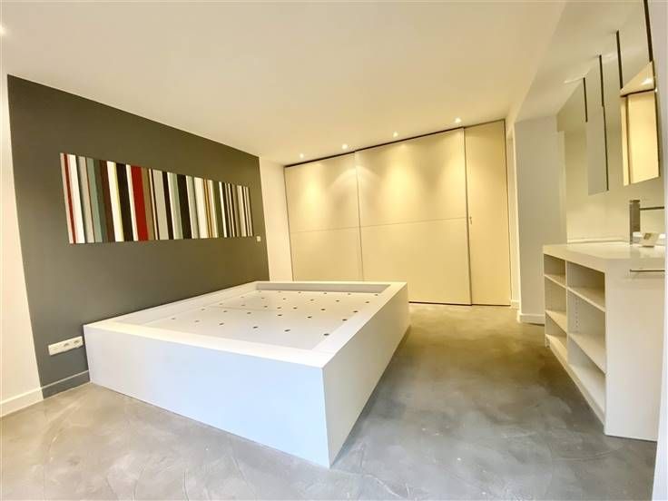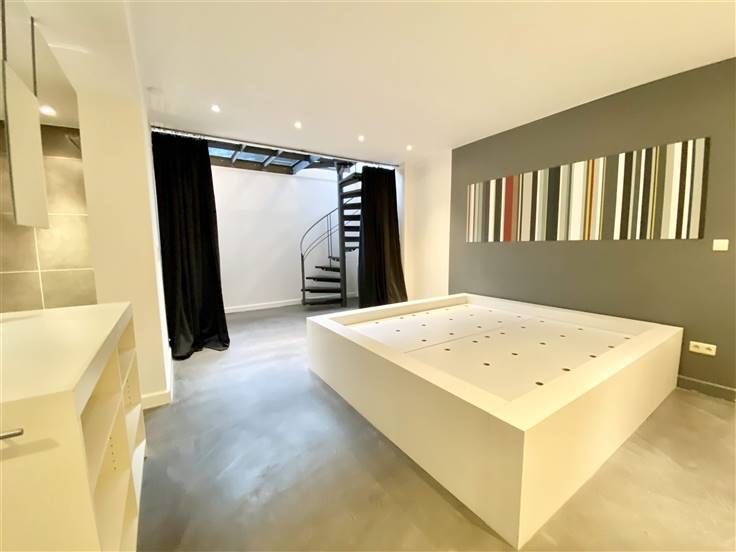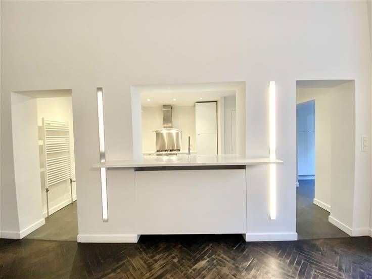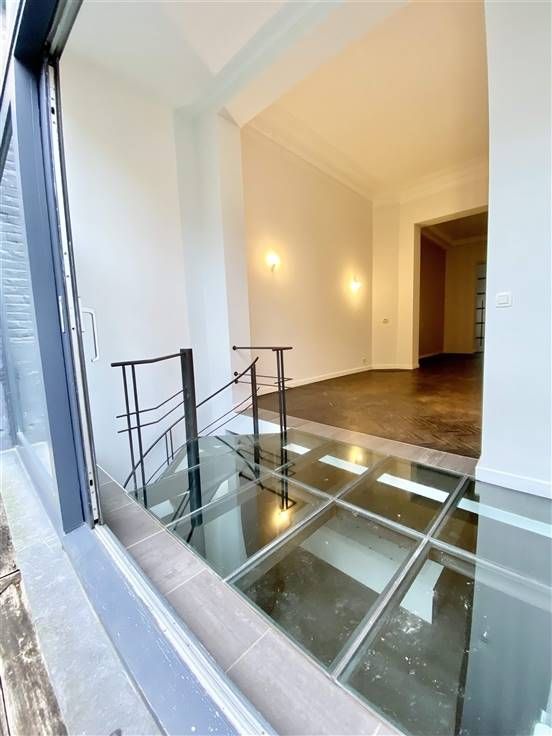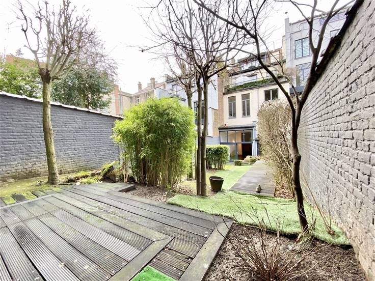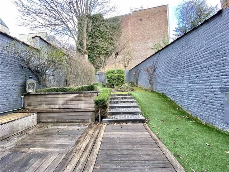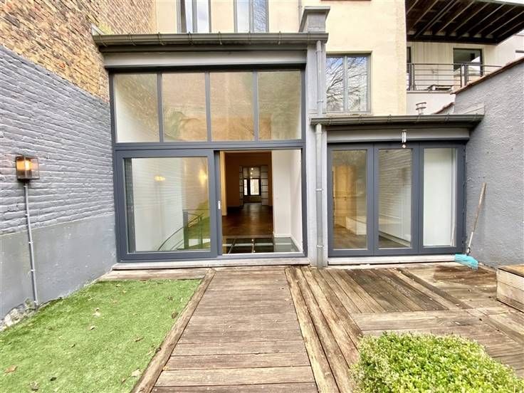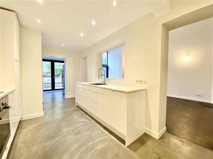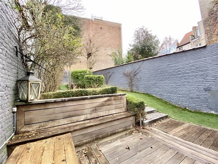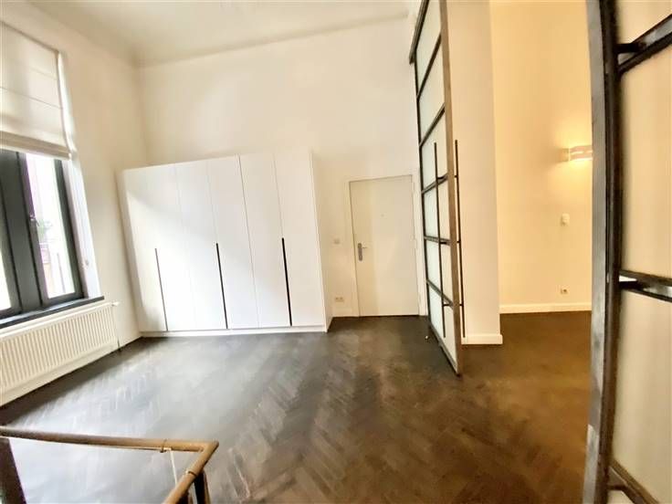 Beschrijving: Op een steenworp afstand van het Kasteleinplein, zeer mooi ongemeubeld duplex appartement met een oppervlakte van +/- 200m2, volledig gerenoveerd, met een tuin van 125m2. Samenstelling: Ruime woonkamer met hoge plafonds, volledig ingerichte open keuken, 2 slaapkamers (25 en 20m2), 2 badkamers, kantoor (18m2), apart toilet, tuin op het zuidoosten, aparte wasruimte, alarmsysteem, voldoende inbouwapparatuur in opslag.