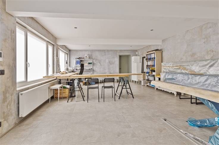 Macnash North presenteert u deze multifunctionele opslagruimte van 325m² met binnenparkeerplaats, gelegen aan de achterkant van een woongebouw. Deze ruimte biedt een uitzonderlijke flexibiliteit, ideaal voor ondernemers, kunstenaars of andere beroepen. Met een plafondhoogte van 3,40 m is het perfect geschikt voor voorraadbeheer of andere toepassingen. De privé-ingang via een sectionale deur van 2,70 m hoog zorgt voor gemakkelijke toegang voor alle soorten voertuigen die aan deze hoogte voldoen. Een berijdbare oprit tot aan de achterkant van het gebouw vergemakkelijkt de toegang tot de opslagruimte en biedt extra parkeergelegenheid. De aan de opslagruimte grenzende bijlage omvat een ruime kantoorruimte van meer dan 60 m², volledig gerenoveerd in 2019, met een lichte en moderne werkruimte. De voorzieningen omvatten een moderne inloopdouche, een toilet, een wastafel en een halfingerichte Amerikaanse keuken. De vloer van gepolijste betonlook-tegels zorgt voor eenvoudig onderhoud. Onder voorbehoud van goedkeuring door de gemeente biedt de opslagruimte voldoende ruimte voor een eventuele transformatie tot hedendaagse lofts. Bij Macnash North bieden wij u uitzonderlijke kansen. Wacht niet langer en neem contact met ons op om een afspraak te maken op 02/881.22.93.