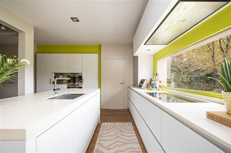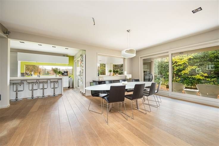 Welkom in deze exclusieve woning in Neerijse, een woning die stijl en comfort naadloos combineert. Deze woning biedt maar liefst 334m² aan bewoonbare oppervlakte en ligt op een royaal perceel van 34a 40ca, omgeven door de prachtige tuin en de rivier de Ijse. Binnenin verwelkomt een open en lichte woonruimte u met een elegante inrichtingsstijl. De ruime woonkamer die voorzien is van een parketvloer is perfect voor gezellige avonden bij de pelletkachel. De grote ramen zorgen voor heel wat natuurlijk licht en bieden een prachtig uitzicht op de tuin. Achteraan de woonkamer vinden we de bureau terug, ideaal voor thuiswerk. De keuken is volledig uitgerust met hoogwaardige apparatuur en een functioneel keukeneiland. Via de keuken is er een directe toegang tot het terras. Naast de keuken vinden we ook nog de bijkeuken terug. De woning beschikt over vier ruime slaapkamers. De master bedroom bevindt zich aan de voorkant van de woning en is voorzien van een ruime dressing en een luxueuze badkamer. Op het gelijkvloers aan de zijkant van de woning bevinden zich nog twee ruime slaapkamers die beide toegang hebben tot een nog te installeren badkamer. Op de eerste verdieping naast de zithoek bevindt zich de vierde ruime slaapkamer met zicht op de tuin en de achterliggende weilanden. Buiten vinden we een uitgestrekte tuin omgeven door bomen en de rivier de Ijse die zorgt voor optimale rust. Deze woning, in combinatie met de schitterende locatie te
