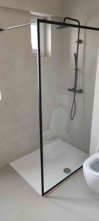 - Prachtige badkamer met luxueuze Tadelakt/Mortex afwerking. Dit geeft een zeer warm en zuiders gevoel. – Handige aparte opbergruimte op de benedenverdieping