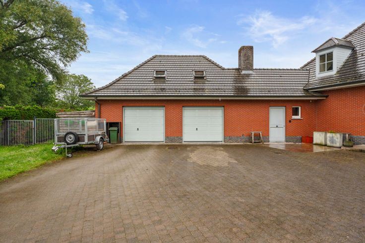 Welkom in deze prachtige woning, gelegen in de groene rand van Lokeren. Gebouwd in 1992 en altijd uitstekend onderhouden, biedt dit huis een perfecte mix van modern comfort en tijdloze charme. Met een EPC-label C, conforme elektrische keuring en asbestveiligheid is deze woning instapklaar en zorgeloos. Bij binnenkomst in de woning heb je een ruime inkomhal. In de leefruimte wordt u verwelkomd door een sfeer van gezelligheid. De ruime, lichtrijke leefruimte en aangrenzende eetkamer bieden een prachtig uitzicht op de groene tuin. Beide kamers zijn afgewerkt met hoogwaardige materialen en oog voor detail, wat zorgt voor een luxe en huiselijke sfeer. De functionele keuken is ideaal voor een groot gezin. Dit met toegang tot het zuid-georiënteerde terras en tuin. Achter de keuken vindt u een ruime berging, een droge kelder, een aparte wasberging met extra toilet en een doucheruimte. Daarnaast is er een grote dubbele garage met extra opbergruimte, die ook perfect kan dienen als professionele kantoorruimte. Boven de garage, bereikbaar via een vaste trap, bevindt zich een complete studio, ideaal voor gasten, als hobbyruimte of als 5e slaapkamer. Daarnaast heb je voldoende plaats voor het park van je auto op de ruime oprit.  Op de eerste verdieping van de woning zijn er vier ruime slaapkamers, een zeer mooie badkamer met zowel een bad als een douche, en een apart toilet. Bovendien is er een ruime opbergzolder, perfect voor al uw extra spullen. Deze woning