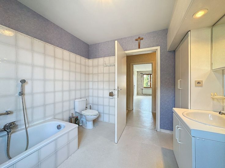 Eerste verdieping: nachthal, 3 zeer ruime slaapkamers, badkamer met douchebad, lavabo en toilet. Er is tevens een ruime, geïsoleerde (zoldervloer) zolder.