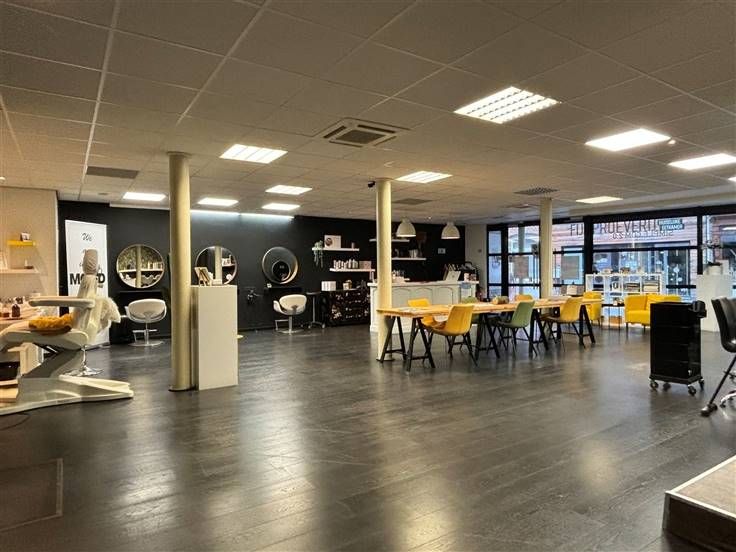 Ruime winkel-praktijkruimte (131m²) / half-ingerichte keuken ((3,9 x 2,3m) / kantoor-stockageruimte (4,9 x 2,2m) / wc met handwas.